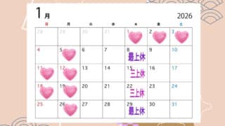 ニュース 1月のお休みです 1月のお休みです!11日(日)は成人式営業となりますのでお休みをいただきます!お客様にはご迷惑をおかけいたしますが、何卒よろしくお願いいたします🙏✨ 2026.01.05 ニュース未分類